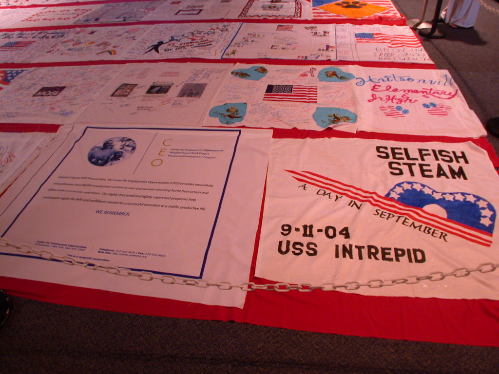 New York City on 9/11 was a huge task to say the least. Volunteers traveled from all corners of the world to be a part of. Not a huge service in size but in American Spirit it was beyond words. I know I was changed forever, as was the quilt and I believe everyone that took part. I can reflect now that it is behind and say what an amazing task everyone pulled off. The directors and volunteers worked harder than any paid employees I could have ever imagine. I'm proud to know each of them as volunteers and on a personal level, very special people. |