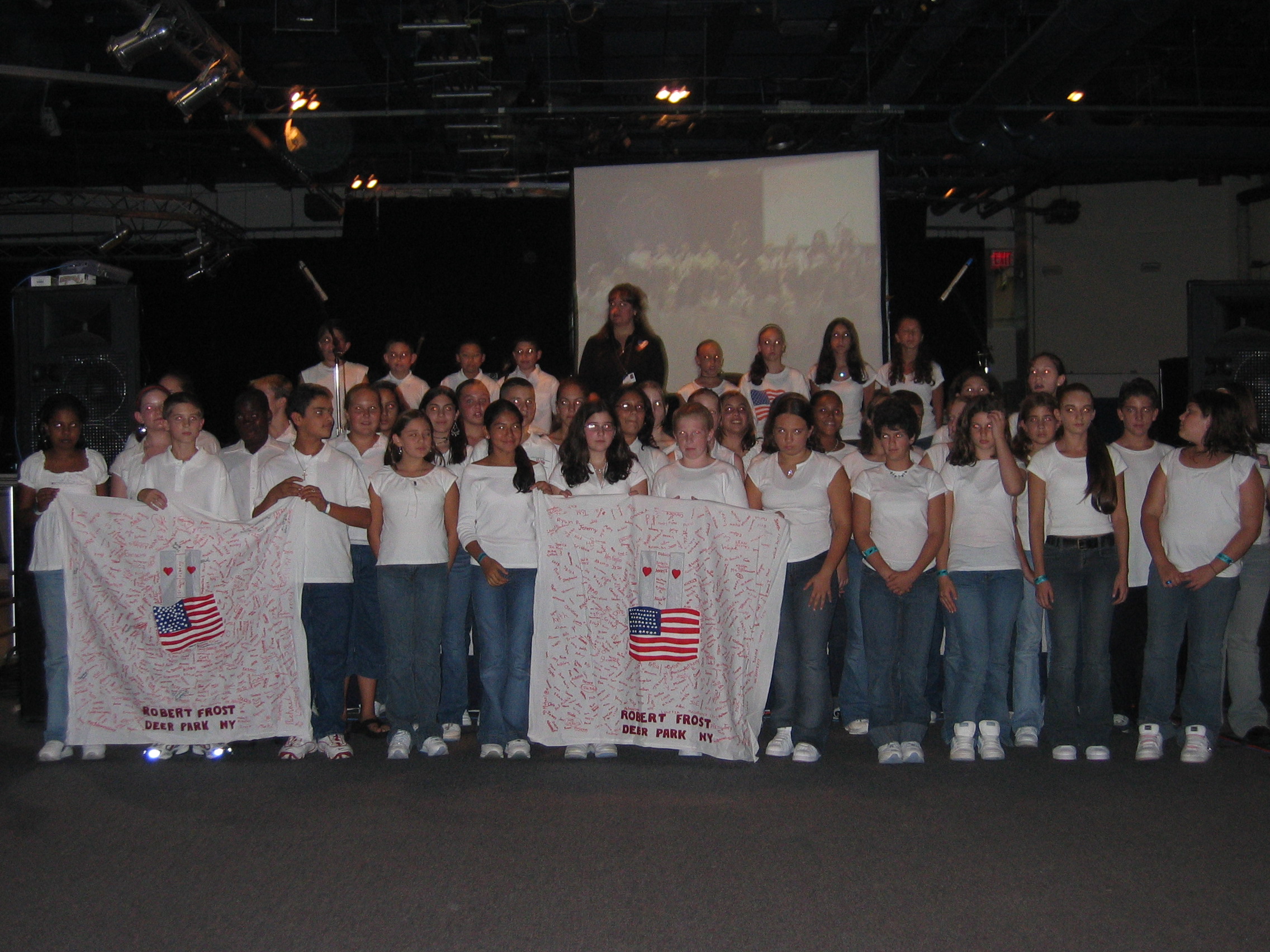 Children and parents from Robert Frost Middle School came to the event so that our future would be represented with the singing of God Bless America. Those children sang a tear jerking performance led by Ms Lee and performed with our very own Shari. It was beyond words what this moment did for the quilt and America. I still get goose bumps! A very special young lady with an angelic voice sang for her country during this event as well. Thank you Emily for sharing your gift of voice for NY city! |